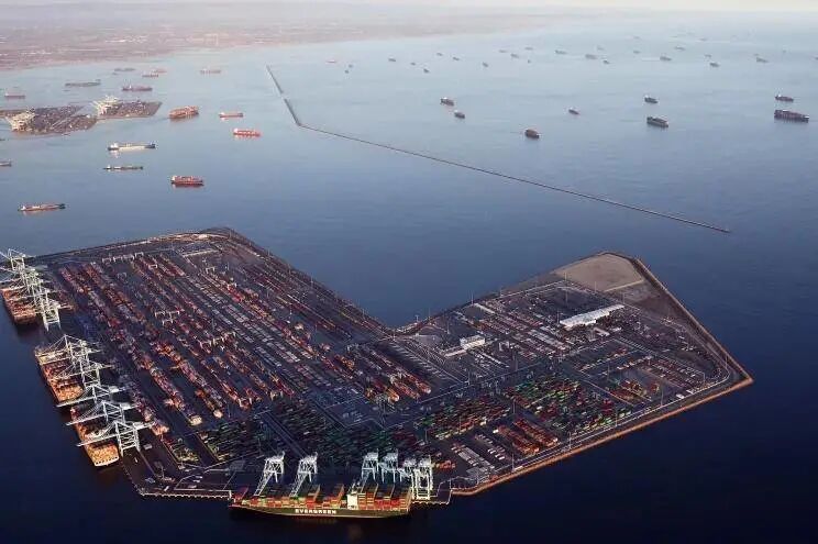 美国洛杉矶港70多艘货轮排队等待 图自红星新闻