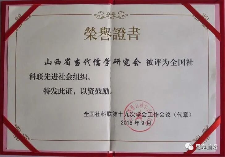 山西省当代儒学研究会(简称:山西儒林)自2005年创立起,经多年积累与发展,山西儒林已成为全国儒学界具有一定影响力与实力的省级儒学社团,为研究、传承与弘扬民族优秀传统文化、建设文化强国做出了卓有成就的贡献,2017年荣获“全国儒学社团先进单位”、“全国社科联创建新型智库先进社会组织”两项全国表彰。