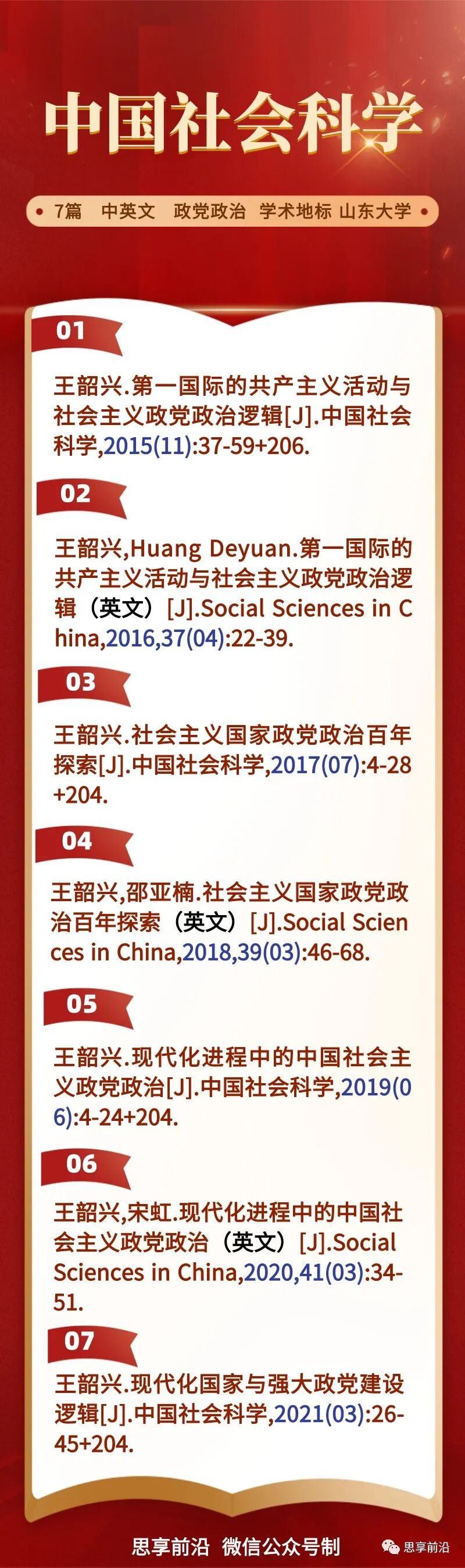 王韶兴,山东大学特聘教授、博士生导师,山东大学世界政党研究中心主任,山东省政党理论研究基地主任、首席专家,全国党建研究会特聘研究员,山东大学学术委员会委员兼社会科学学部主任,教育部研究生思政课教学指导委员会副主任委员,中国科学社会主义学会副会长,中国政治学会常务理事,山东省科学社会主义学会会长,山东省人民政协理论研究会副会长。先后荣获“全国百名优秀社科普及专家”“山东社会科学名家”等称号,享受“国务院政府特殊津贴”,为山东省百人理论人才工程、山东省智库高端人才首批入选者。长期从事马克思主义政党理论与政党政治问题研究,先后主持国家社会科学基金专项工程重大项目、国家社会科学基金重点项目、中央马克思主义理论建设与研究工程项目、教育部人文社科基地重大项目等各类项目20余项,出版《政党政治论》等学术专著多部。在《中国社会科学》《政治学研究》《马克思主义研究》《人民日报》《光明日报》等高端学术报刊发表学术论文100余篇,其中多篇被《新华文摘》《中国高校社会科学文摘》《中国人民大学报刊复印资料》等转载。荣获教育部高等学校科学研究优秀成果二等奖1项,山东省优秀社科成果一等奖5项。围绕社会主义政党政治理论与实践问题,在《中国社会科学》发表7篇中英文学术论文,提出的标识性概念、形成的学术见解和理论观点,奠定了社会主义政党政治问题研究的理论基础和分析框架,被称之为社会主义政党政治问题研究的“学术地标”。