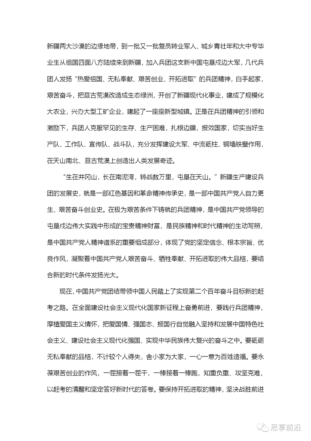 践行热爱祖国、无私奉献、艰苦创业、开拓进取的兵团精神