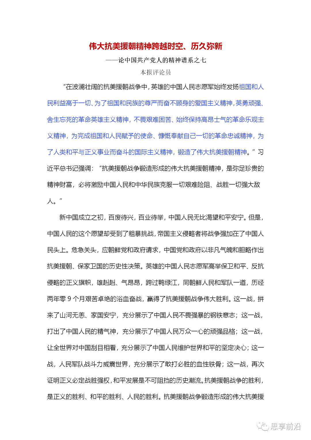 伟大抗美援朝精神跨越时空、历久弥新