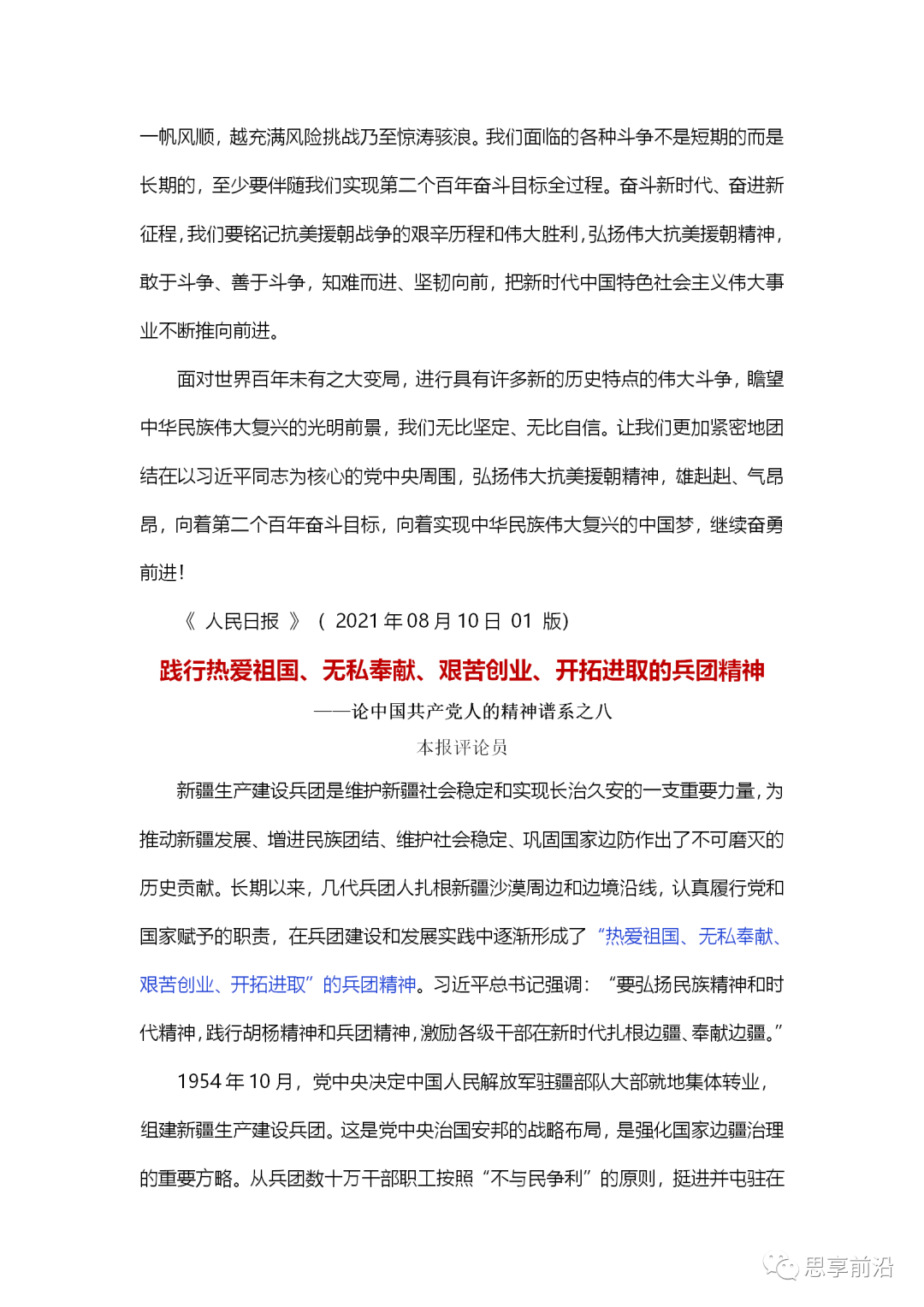 从2021年7月19日开始,《人民日报》陆续刊发评论员文章论中国共产党人的精神谱系,截至8月17日,已刊发9篇系列评论。