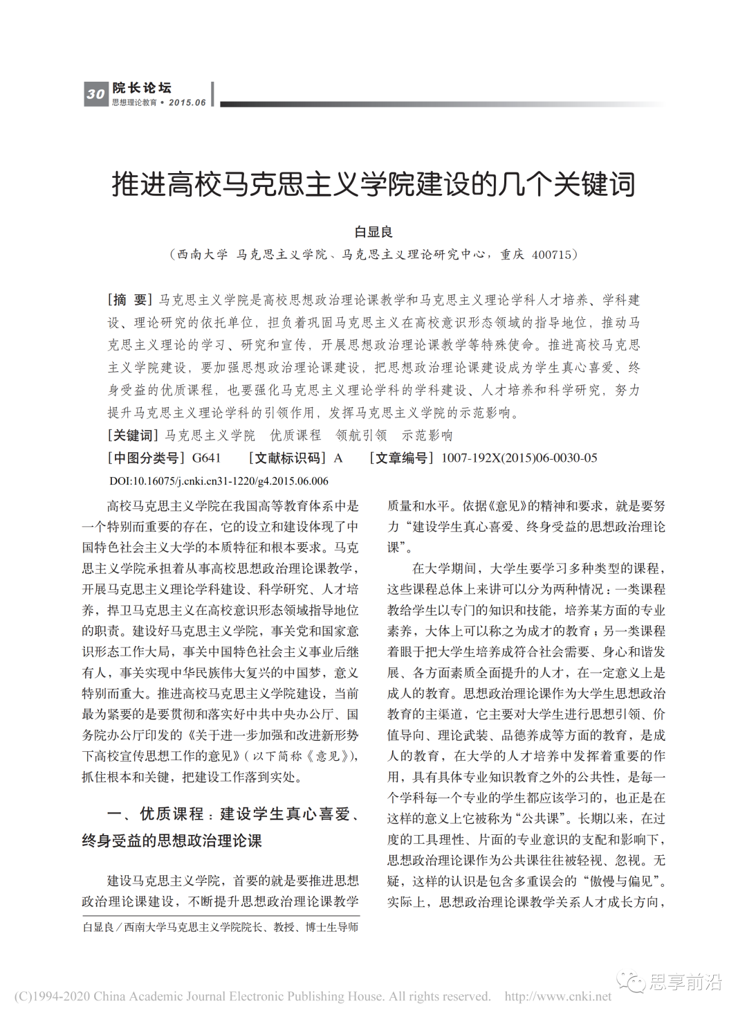 【7】白显良:推进高校马克思主义学院建设的几个关键词