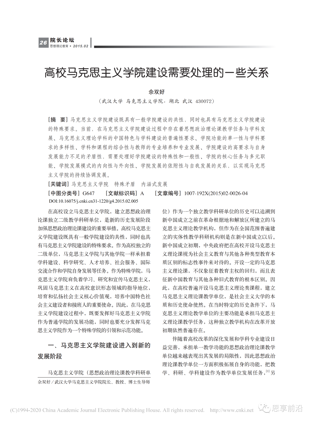 【6】王韶兴、张士海:关于高校马克思主义学院建设的几点认识