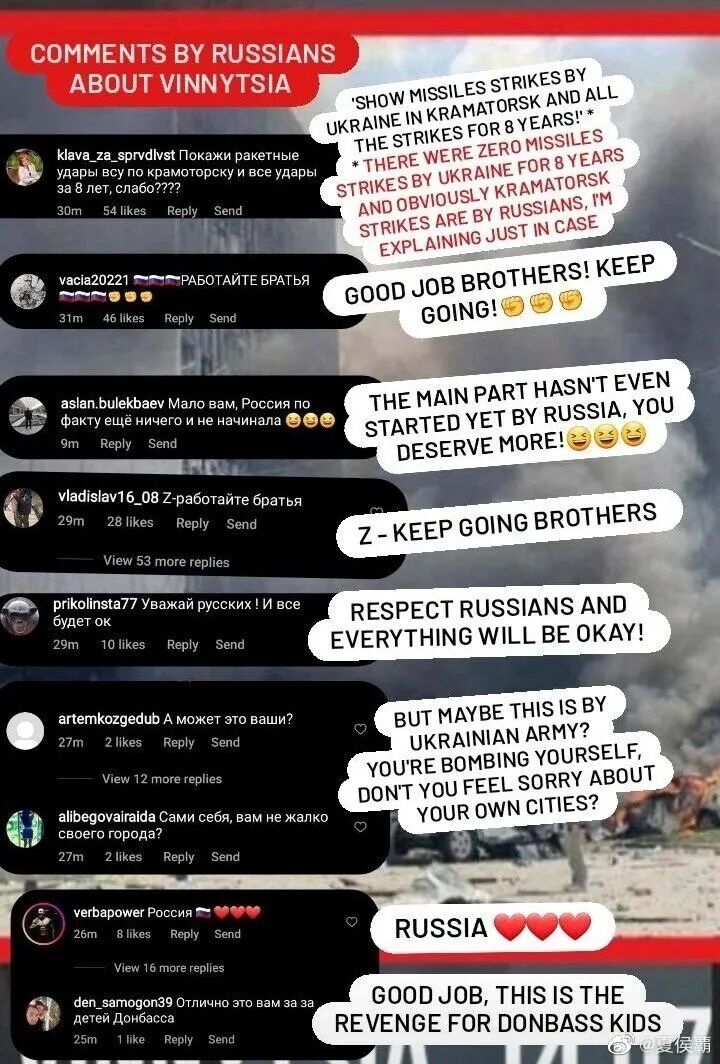 基辅独立报援引乌克兰国家紧急服务部门的说法称,文尼察的救援行动已经结束。惨剧中有23人死亡、202人受伤、1人失踪、3人获救。55座住宅和42辆汽车受损或被毁。当然我也知道此时此刻还有很多俄国人、内网“军事博主”和鹅笑们在说:死得好,都是乌纳。有时候我确实觉得某些人类比动物还要残忍。