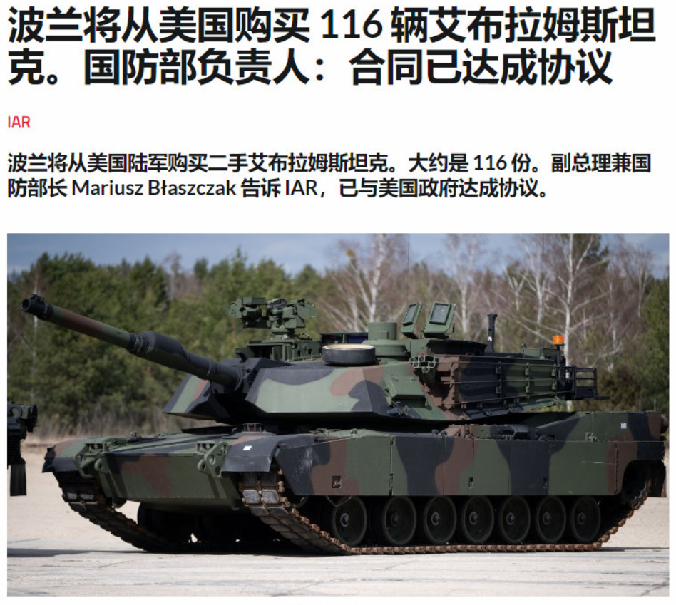 而在上周,波兰又火速采购了116辆二手的M1A1坦克用来填补波兰移交给乌克兰的T-72和PT-91坦克的空缺。波兰要得非常急,能立即交付的只有二手货。不过波兰国防部声明,这些M1A1陆续将按照M1A2SEPv2的标准进行升级。为什么说这件事情跟德国有关系呢?是因为本来德国陆军蛮可以填补上这个空白的,但是波兰给了乌克兰T-72之后跟德国人要豹2A6,结果德国人装傻,说我确实答应给你们一些豹2,然而我家现在也没有多余的啊,就这么跟一笔庞大的军售失之交臂。德国人是不想挣这个钱呢,还是不敢得罪俄罗斯呢?我感觉应该要查一查哪些德国政要拿了俄罗斯的钱。