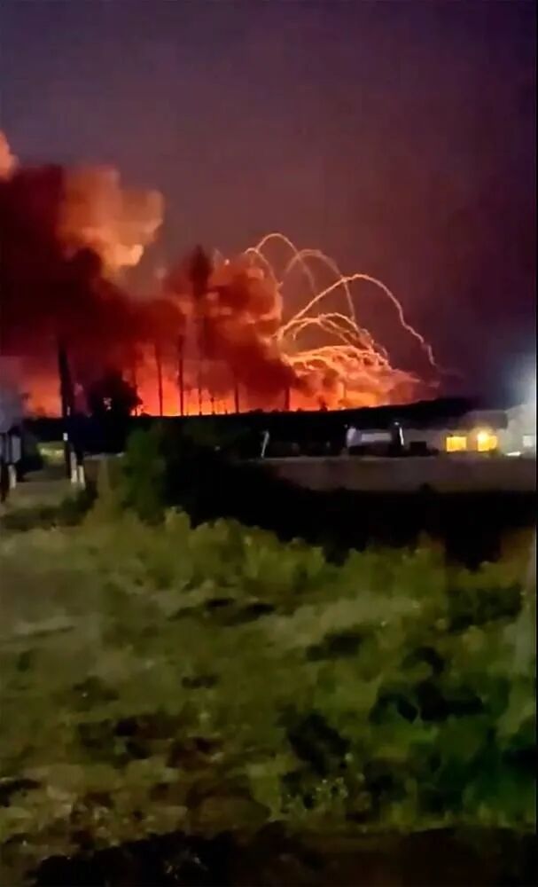 2、在与乌克兰接壤的俄罗斯别尔哥罗德州,俄军一个大型弹药库发生大爆炸: