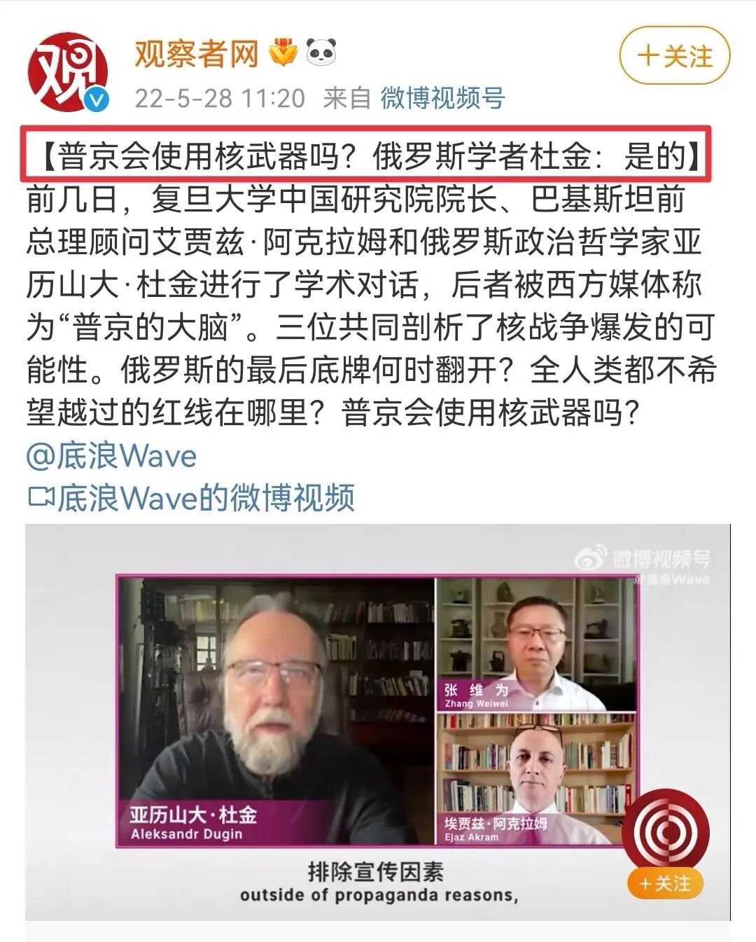 杜金和其女儿这一套疯话,许多上了年纪的中国人都不陌生,因为我们上个世纪的时候曾经猛烈地批判过,并且真真实实受到过伤害,万万没想到进入21世纪后这种学说竟然又在俄罗斯死灰复燃,并且都到了2022年了,还能以一场战争的形态赤裸裸地表现出来。更想不到的是,这样的人,主张肢解中国并且从未对此道过歉、修正过说辞的人,在中国还被奉为上宾。是我疯了还是这个世界疯了?