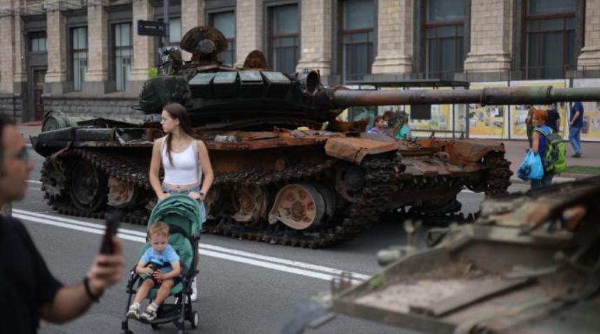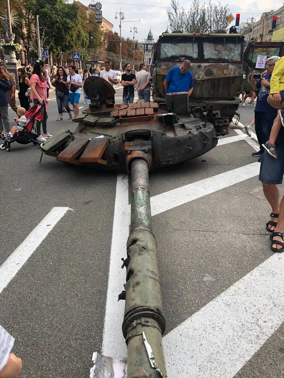 这一部分的最后一则消息:俄军现在正在乌克兰首都基辅的主要街道上!不过您放心,这些重型装备全部是在战争中被击毁的状态: