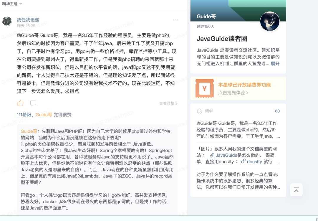 最后老规矩,推荐一下自己创建的星球。球友的问题基本做到100%回复!真就是想有个优质 Java 交流圈子,不是为了赚钱,哈哈!(想起老罗昨晚的直播,你买了什么吗?)