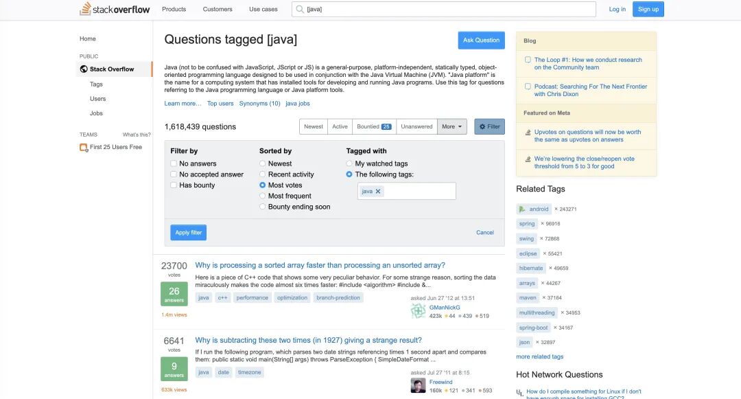 StackOverflow[1] 是一个程序设计领域的问答网站,网站允许注册用户提出或回答问题。和知乎很像,重大的一点不同是 Stack Overflow 可以对问题进行打分。