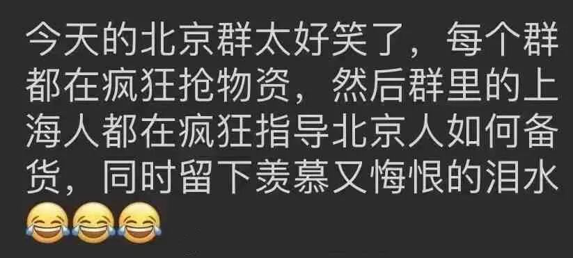 就算没啥事儿,北京人已经在物资中等封控,实在不行都想自己封自己。