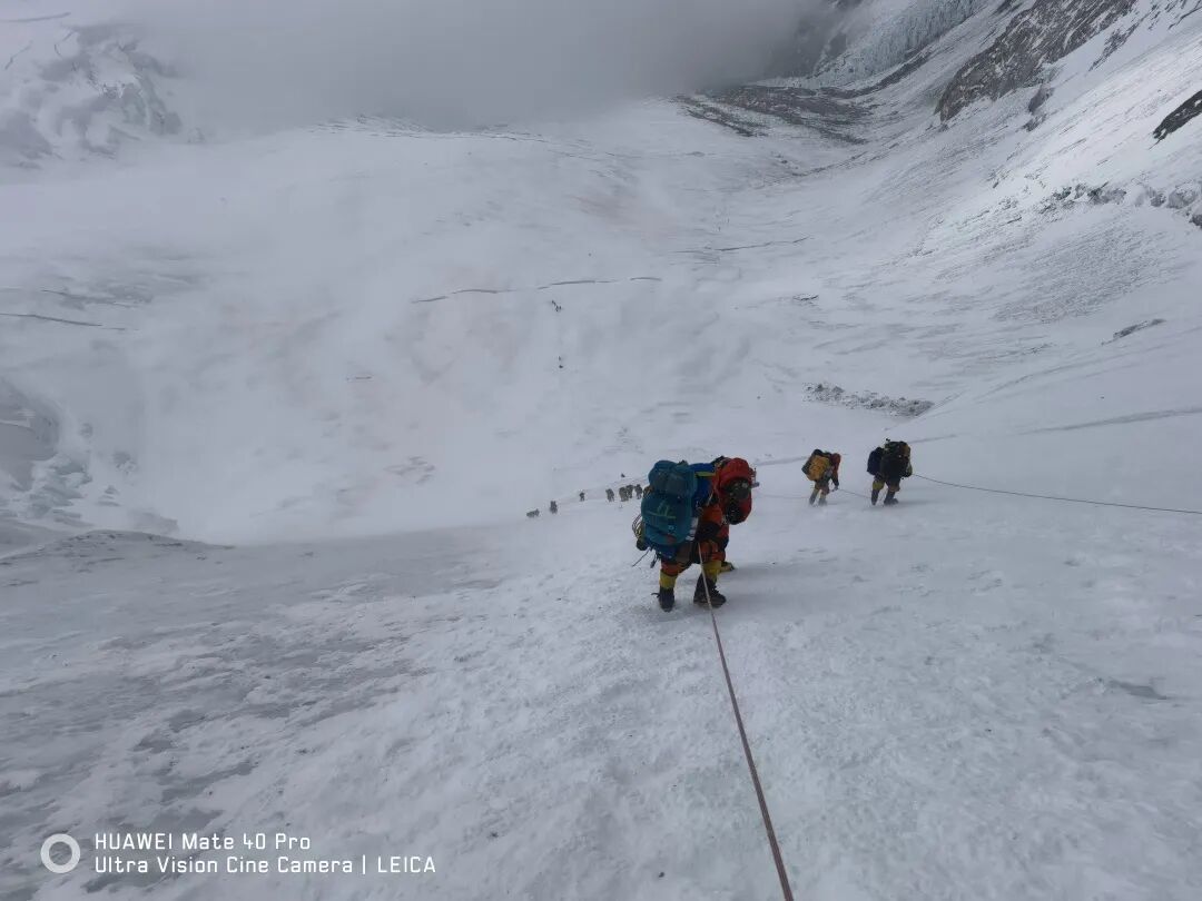 这最后的一段,因为要依次通行,每年登珠峰的人都要在这里排队等候,往年最长有排队4个小时的,也有人因为排队时间太长坚持不住而登顶失败。还有人因为等待体能耗尽,人就没了。