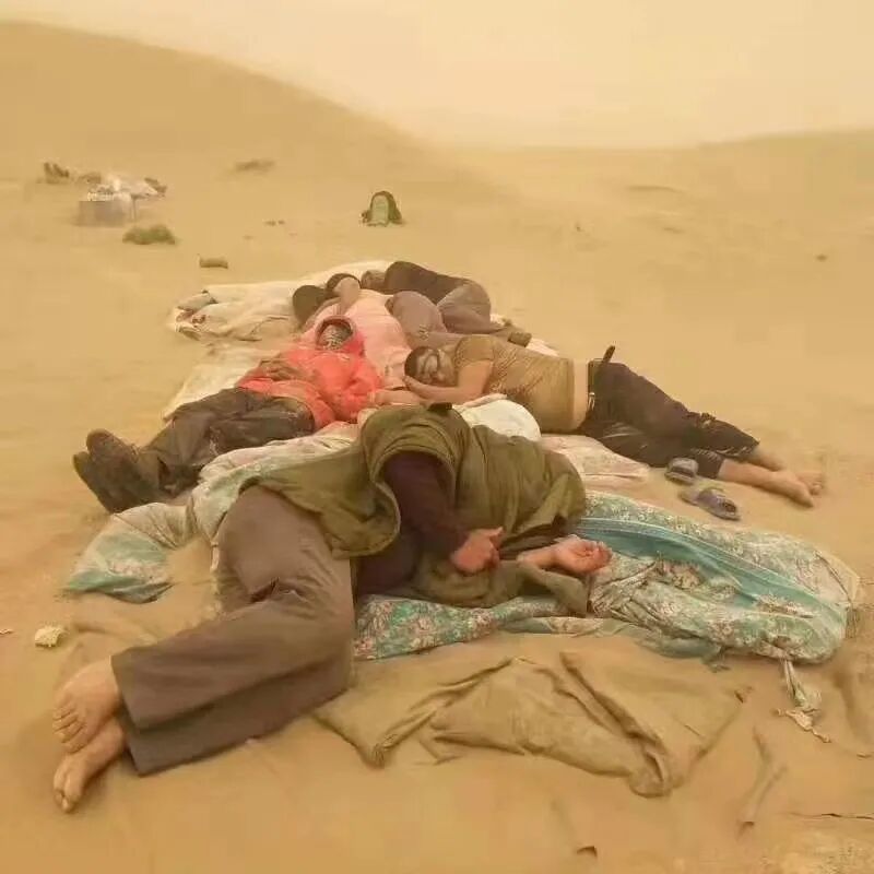 2021年8月,陨石猎人前往罗布泊猎陨时遭遇沙尘暴,帐篷被吹走后只能在沙漠中就地休息。