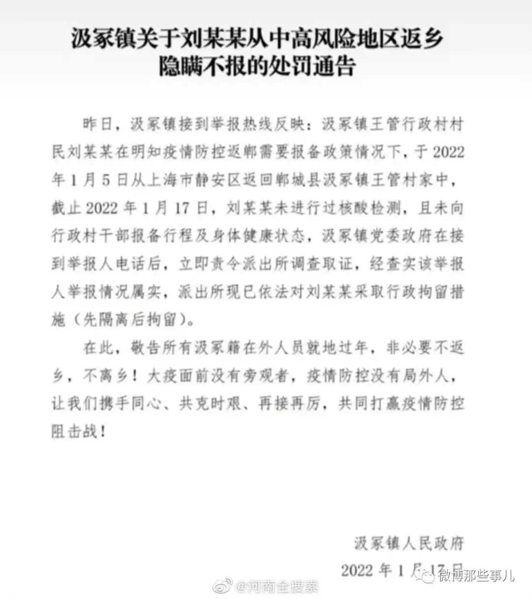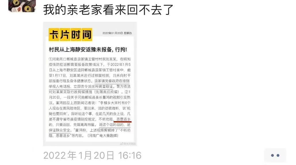 1月20日,董县长在县里的防疫会议上说,中高风险地区人员返乡,先隔离后拘留。他还创造了一个年终热词:恶意返乡。第二天,“恶意返乡”冲上了热搜第一。