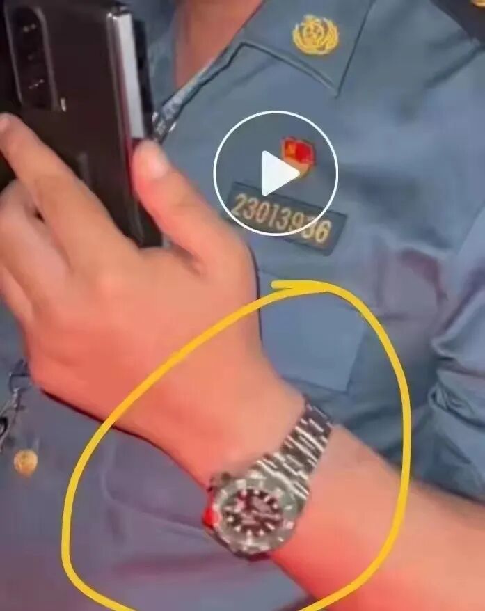 视频在网上迅速发酵,网友发现,随后前来的一位穿制服的执法人员,戴着一块疑似劳力士绿水鬼手表,该表价值14万元。