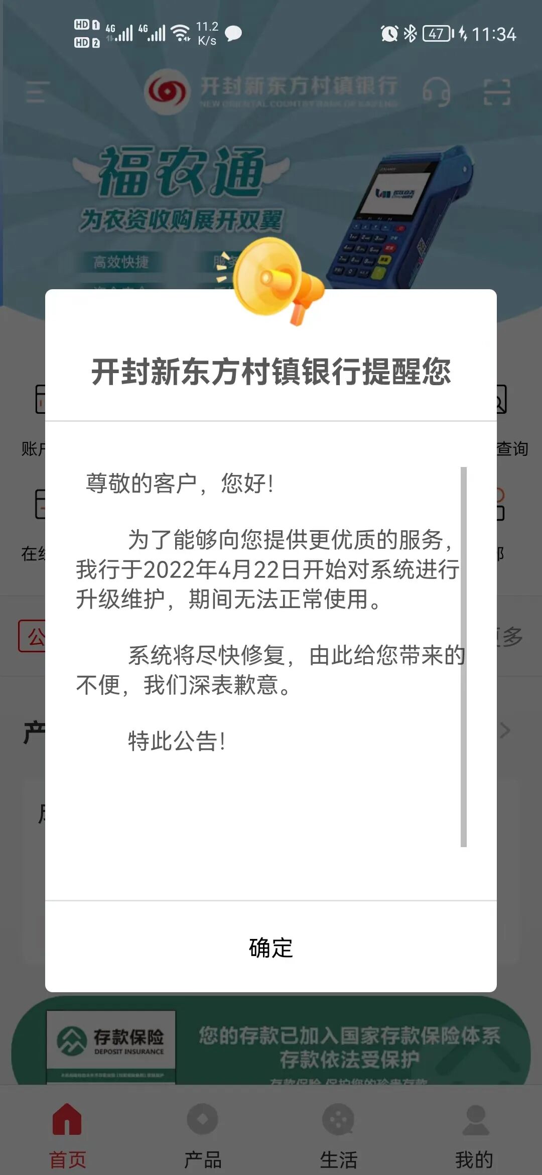 目前,禹州新民生村镇银行依旧显示系统”维护中“