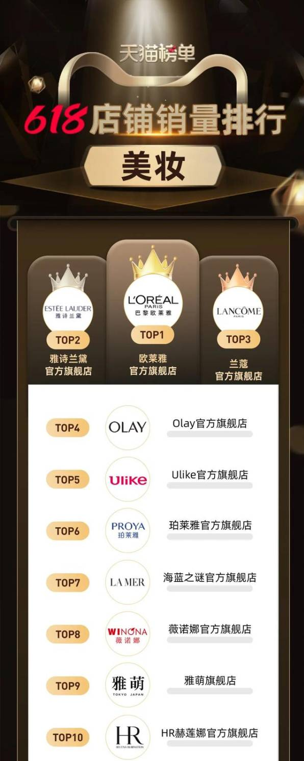 在电商平台的购物节中,雅诗兰黛、兰蔻等品牌加大了优惠力度,推出了赠品小样、打折促销、买一送一等活动,销量迅速飙升。今年618的天猫销售榜单上,曾霸榜的新国货品牌难觅踪迹,国际品牌在护肤品牌Top 10中占据8席,在彩妆品牌Top 10中占据9席。