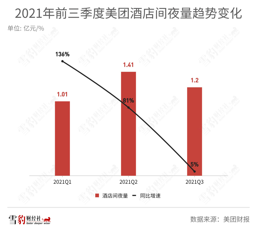不过到店酒旅尚不能扛起美团收入大旗,一是因为自身盘子太小,目前仅为外卖业务的1/3;二是受疫情等因素影响,去年三季度国内酒店间夜量为1.2亿,同比增长仅5.2%,上一季度这两个数字分别为1.4亿和80.5%。
