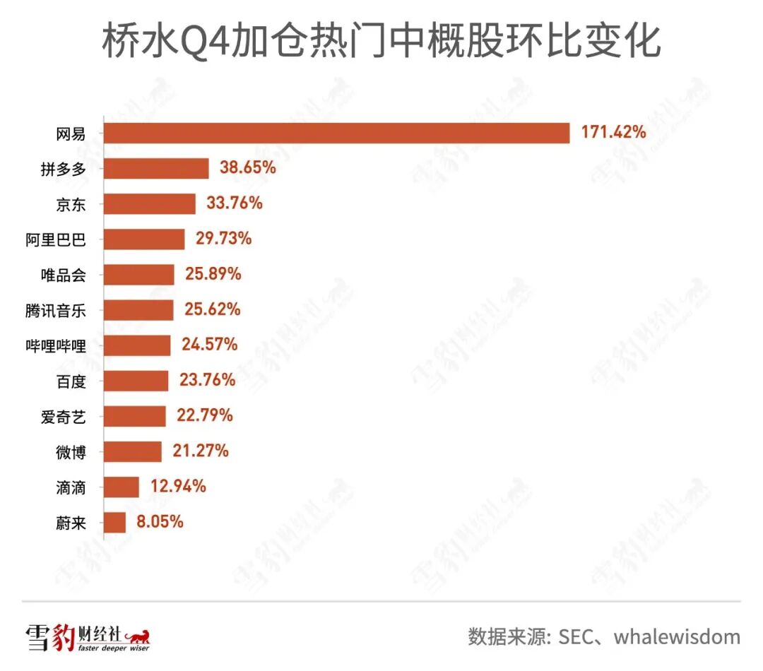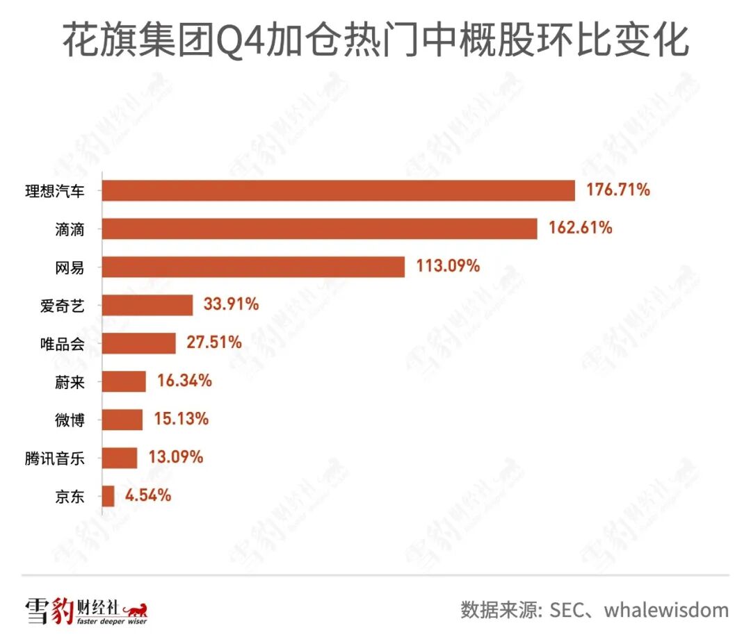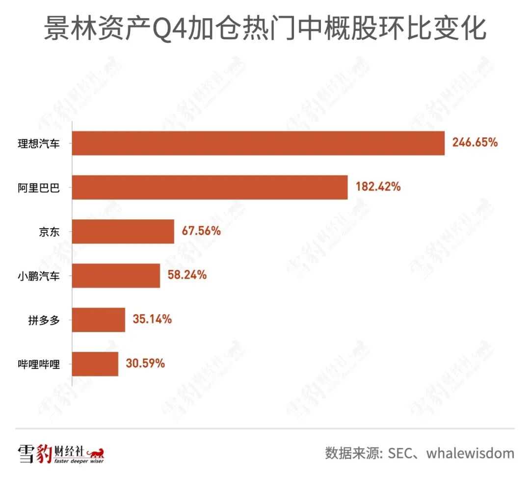 以持仓中概股为主的国内头部百亿私募景林资产Q4持仓34只美股,总市值26.96亿美元,环比增加8.93%。在景林前十大重仓股中,网易、拼多多、京东分列第四、第七、第八位。