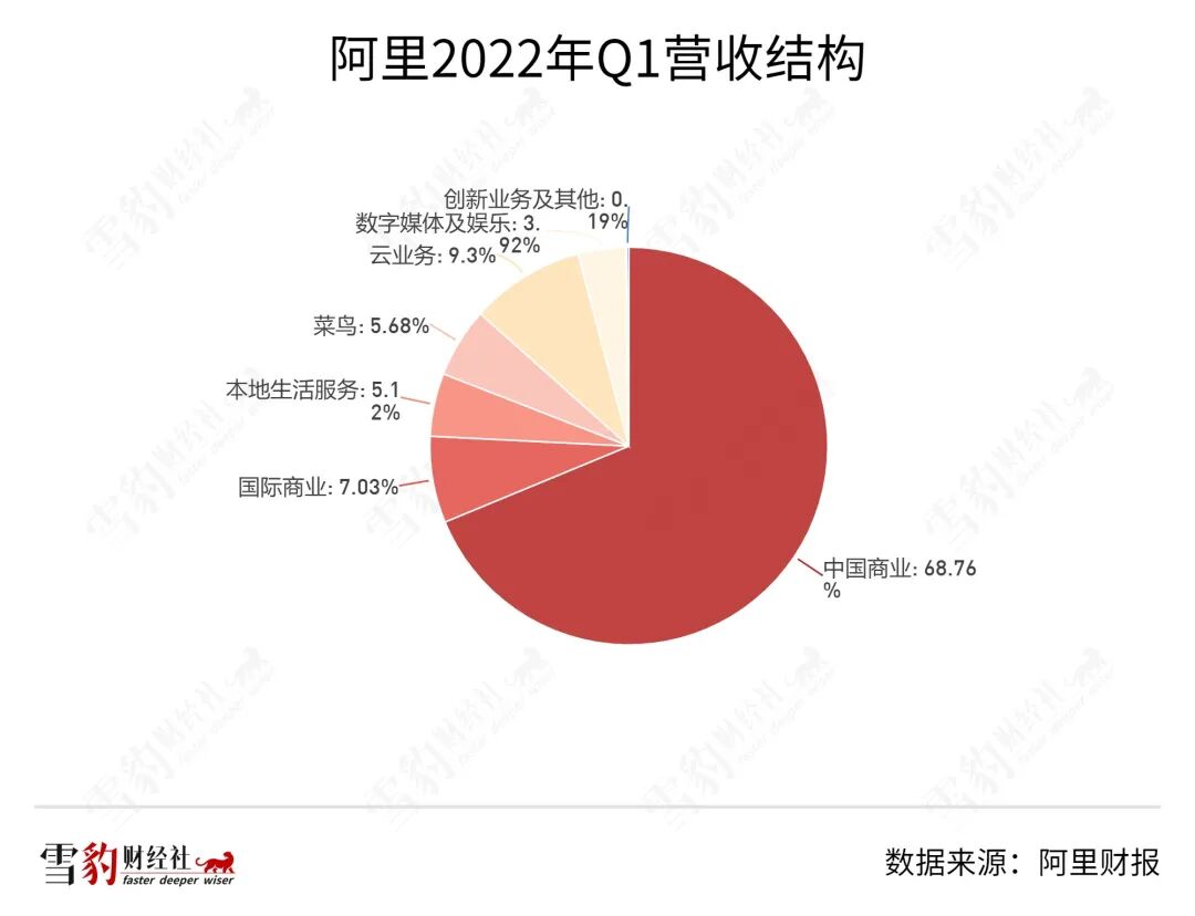 再看阿里,尽管中国商业业务占据总营收的69%,但其业务也已遍及云、菜鸟、本地生活、数字媒体等板块。尤其是云业务成为阿里新的增长引擎,据Canalys数据,截至2021年,中国云市场中,阿里云市场份额37%继续保持第一。