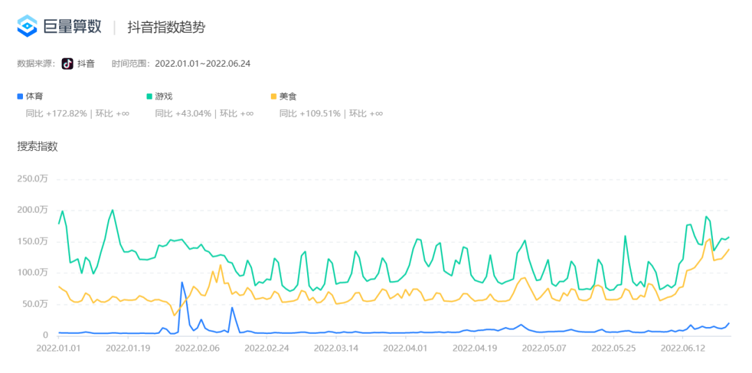 2022上半年,抖音的体育流量增长远高于游戏和美食