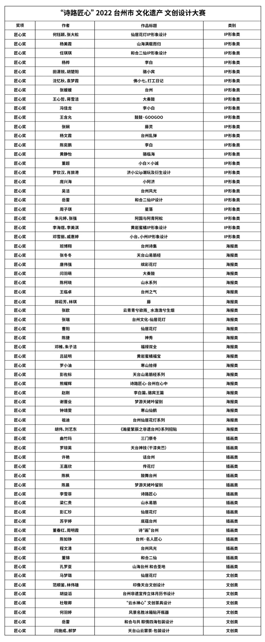 “诗路匠心” 2022 台州市文化遗产文创设计大赛|获奖名单正式发布!