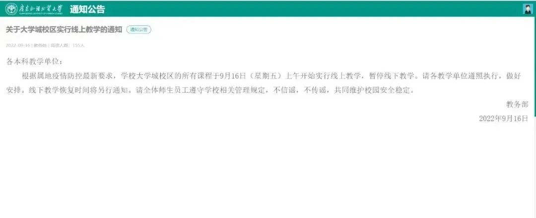 广州1高校发布临时管控通知