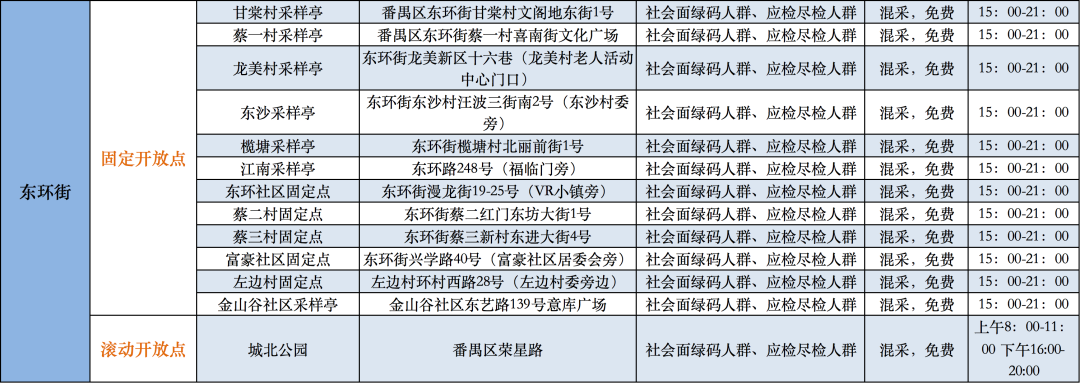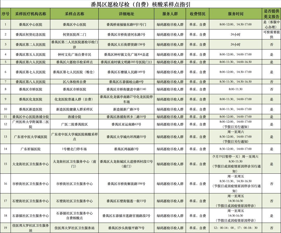 ➤9月17日(今天)番禺区核酸采样点汇总,上下滑动查看: