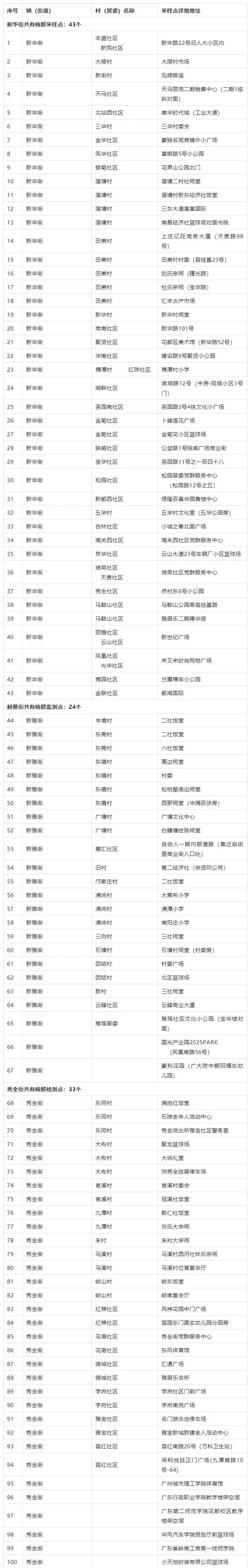 【花都区核酸采样点一览表】