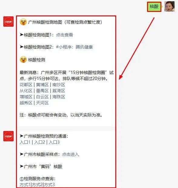在主页对话框回复【核酸】
