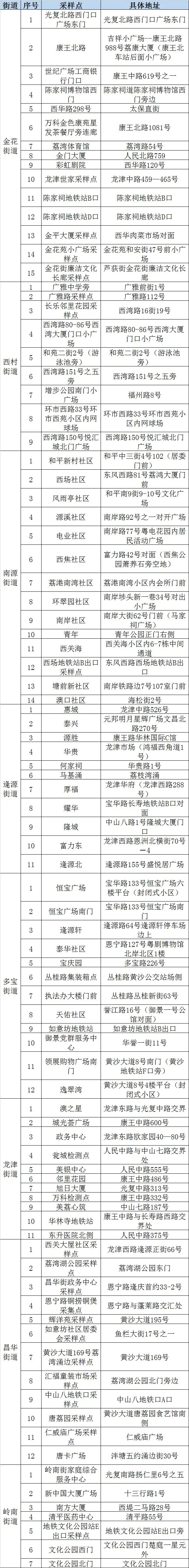彩虹街道:周门北路31号、33号、37号、39号,周门街172、174、176号,周门西街3号、4号,园中园广场核酸采样点;
