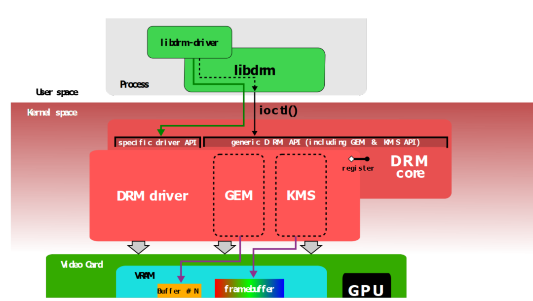 DRM是linux内核中负责与显卡交互的管理架构,用户空间很方便的利用DRM提供的API,实现3D渲染、视频解码和GPU计算等工作。