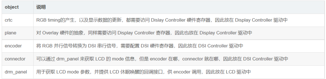 PS:drm_panel不属于object范畴,只是为了降低LCD驱动与encoder驱动间的耦合,是一堆回调函数集合。