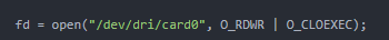 DRM框架成功加载后,会创建一个设备文件/dev/dri/card0,上层用户应用可以通过该文件节点,获取显卡的各种操作。