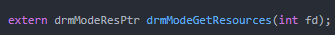 打开DRM设备文件后,通过以下函数获取显卡的资源句柄,进而进行显卡资源的操作。