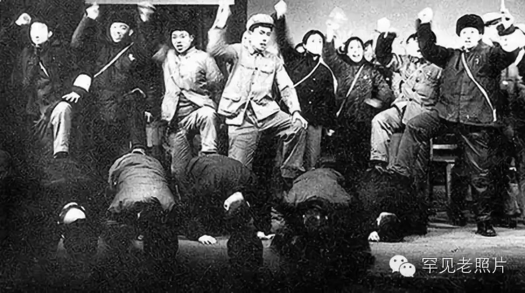 1966年11月,上海工艺美术学校和上海戏剧学院的红卫兵脚踩他们老师和学校领导的屁股,摆出红灯记的舞台造型。