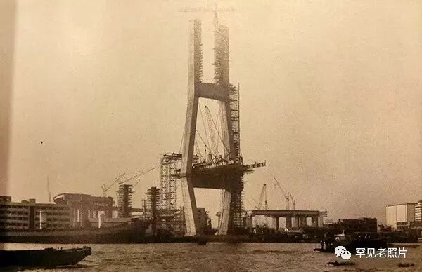 1992年,上海,外滩东望浦东陆家嘴,建设中的港务大楼和东方明珠塔。