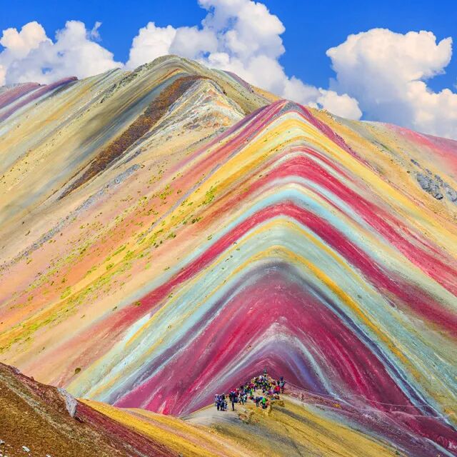 秘鲁安地斯山脉的彩虹山,五彩斑斓美不胜收,各种各样的颜色从山脚一直延伸到山顶。