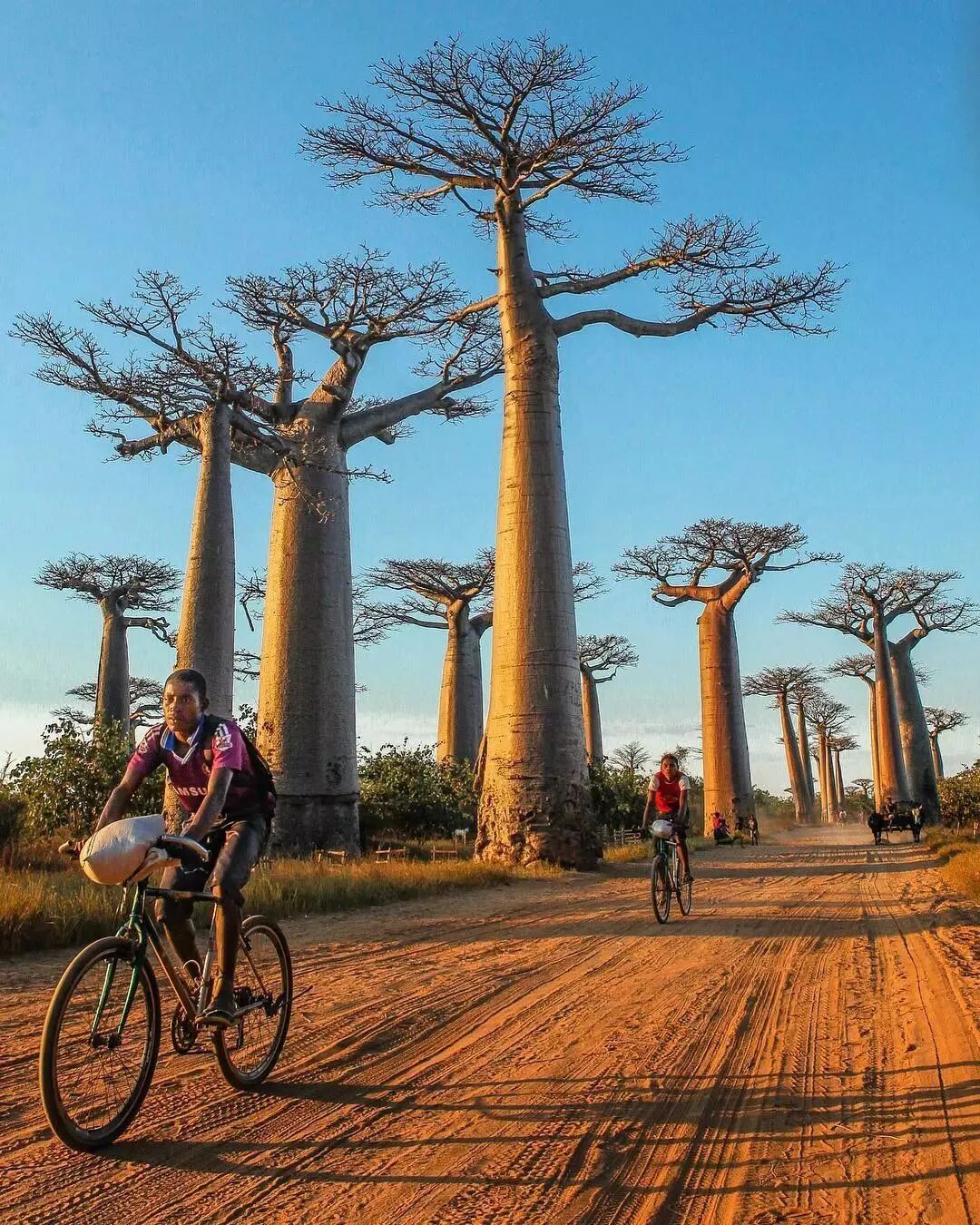 马达加斯加岛的西部,沿着穆伦达维镇和贝洛尼镇之间的猴面包树大道(实际上就是一条土路)是观赏猴面包树的绝佳地方,猴面包树大道的夕阳风光也最有味道。