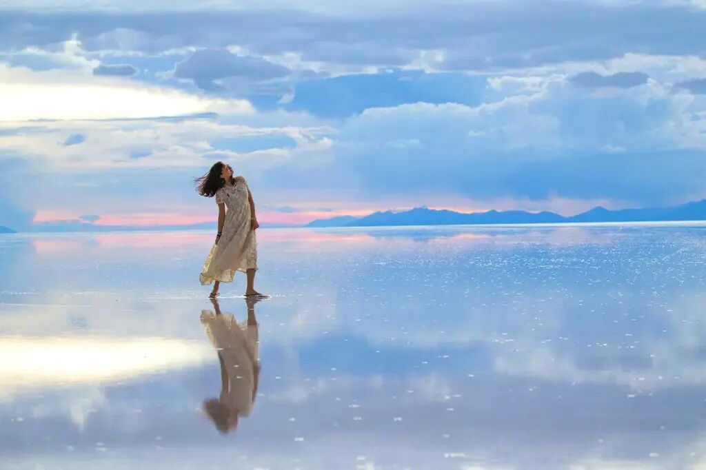 天空之镜是极富浪漫情调的地方,是你此生旅行必定要去的地方,当你老婆置身于天地一体的美景里,你老婆会兴奋的哇哇大哭。