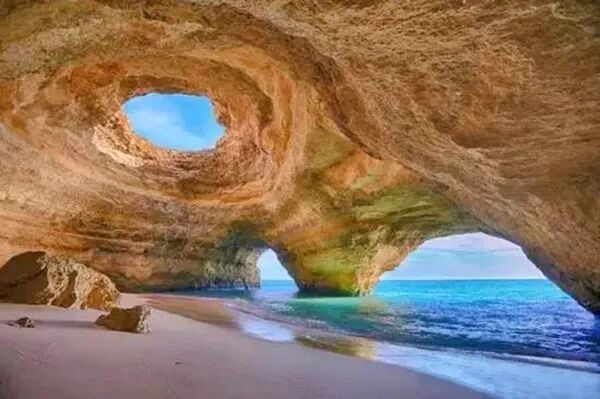 贝纳吉尔海滩洞穴位于葡萄牙南部阿尔加维地区海岸线上,是临海悬崖被海水侵蚀几千万年而形成的海蚀洞。