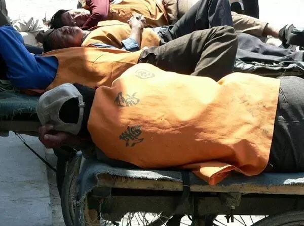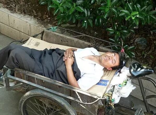 这是某市场里的搬运工,就这样在阶梯上睡着了,他们太累了!