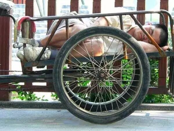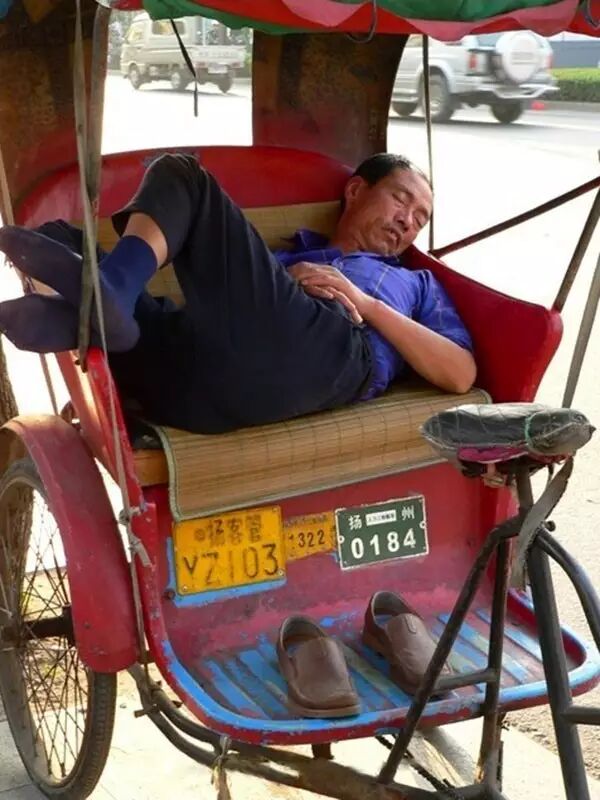 三轮车夫,在自己车里酣睡淋漓。