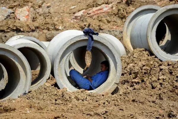 修路工人中午躲在这预制涵洞井里睡了起来。