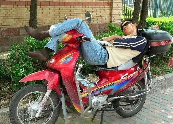 摩的司机就地取材睡在自己的座驾上。
