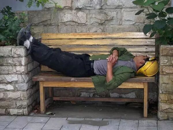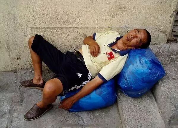 能找个地方睡一觉已经是很幸福的事,还在乎什么条件?所以他们睡的是那么酣畅淋漓。