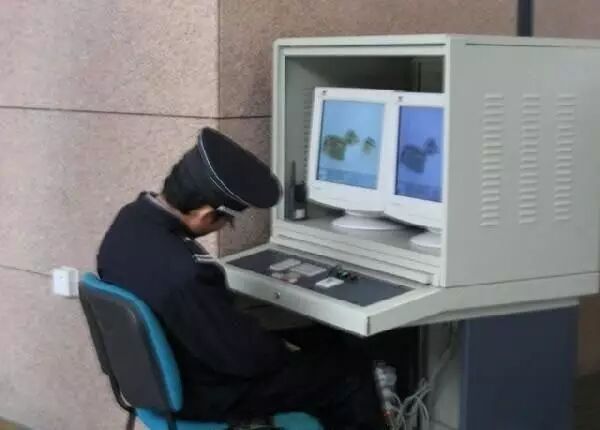 某单位保卫监控室里打盹的保安。