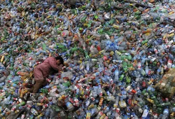 废品收购站的老板疲惫的酣睡在这脏兮兮的塑料瓶上。