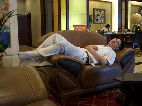 酒店大厅里这位仁兄就这样不文明的入睡了。